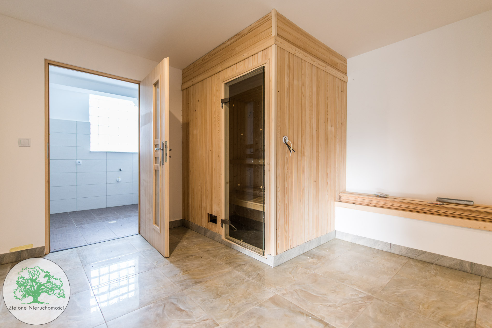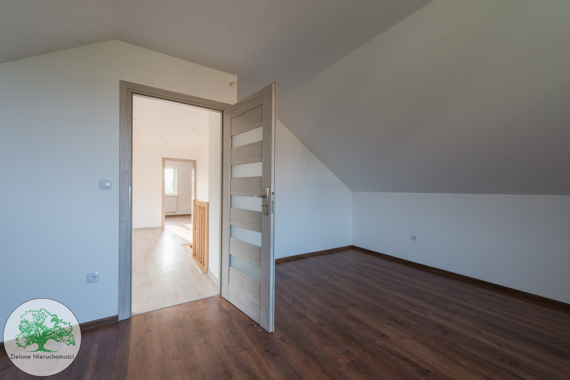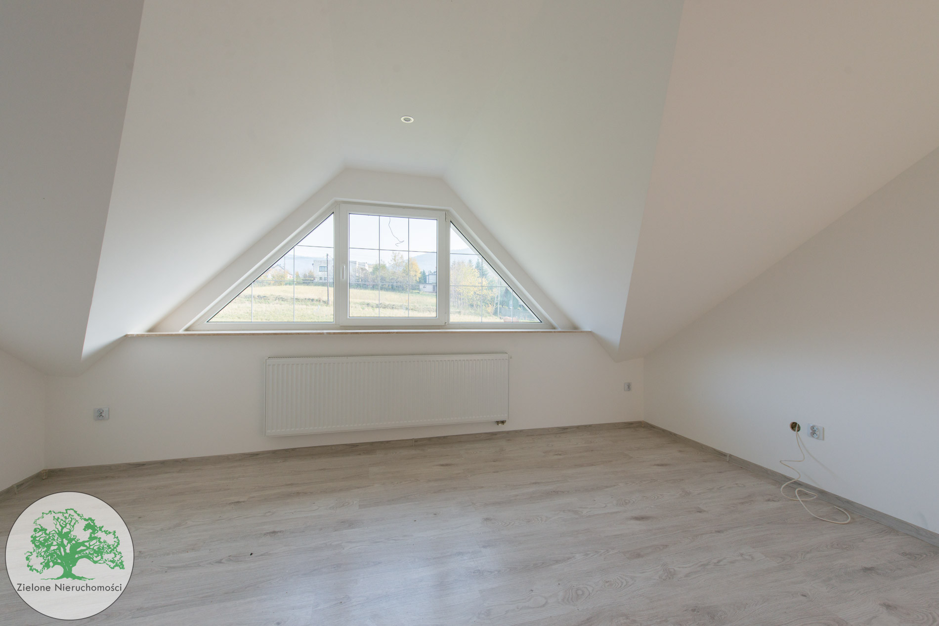 Oferujemy Państwu na sprzedaż nowy 5 pokojowy dom o powierzchni 275 mkw., wybudowany w 2017 roku na działce o powierzchni 887 mkw. zlokalizowany na granicy Bielska-Białej i Kóz.Dom parterowy z użytkowym poddaszem, podpiwniczony, wybudowany metodą tradycyjną z betonu komórkowego, ocieplony 15 cm styropianem pokryty tynkiem akrylowym. Okna PCV, parapety wewnętrzne marmurowe, zewnętrzne granitowe, w oknach elektryczne rolety. Na podłogach panele,na dachu blacho dachówka. Ogrzewanie kominkiem z płaszczem wodnym.