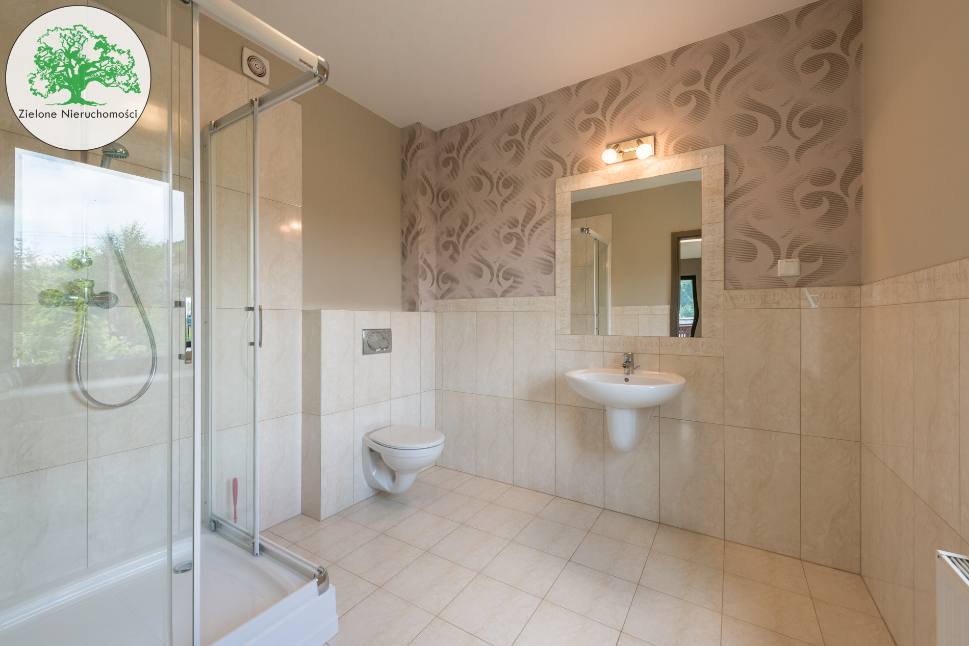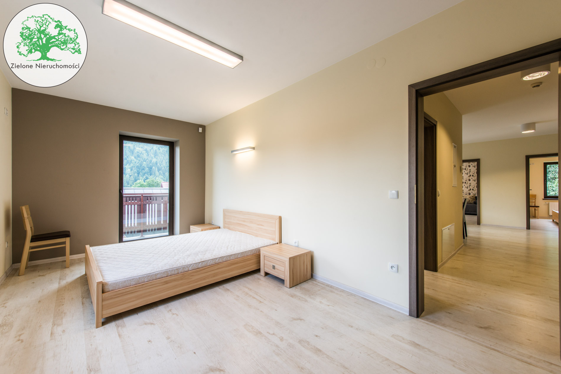 Nieruchomość usytuowana jest na 15 arowej działce, na zboczu,posiada ogród i 8 miejsc parkingowych. Dodatkowo z tyłu budynku jest 4 -arowy teren rekreacyjny z którego jest zejście do strumienia.