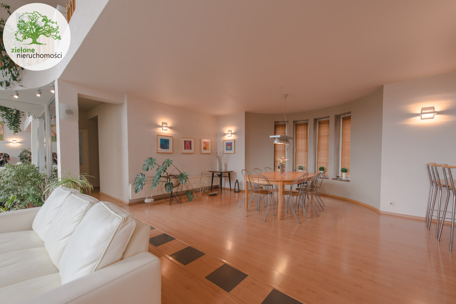 Oferujemy Państwu piękny, niepowtarzalny dom zlokalizowany w Starym Bielsku, na wzgórzu, w ładnej willowej dzielnicy Bielska-Białej, świetnie skomunikowanej zarówno z centrum miasta, jak również z drogami wyjazdowymi w kierunku Cieszyna i Katowic.Budynek został zaprojektowany przez znanych i cenionych architektów, jest realizacją indywidualnego, niepowtarzalnego projektu.Budynek ma powierzchnię użytkową 285,9 mkw., posiada 8 pokoi, kuchnię, 3 łazienki.