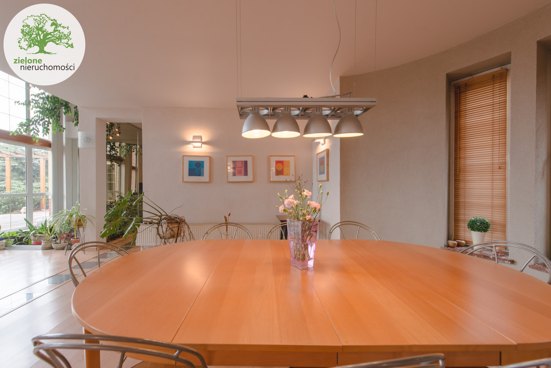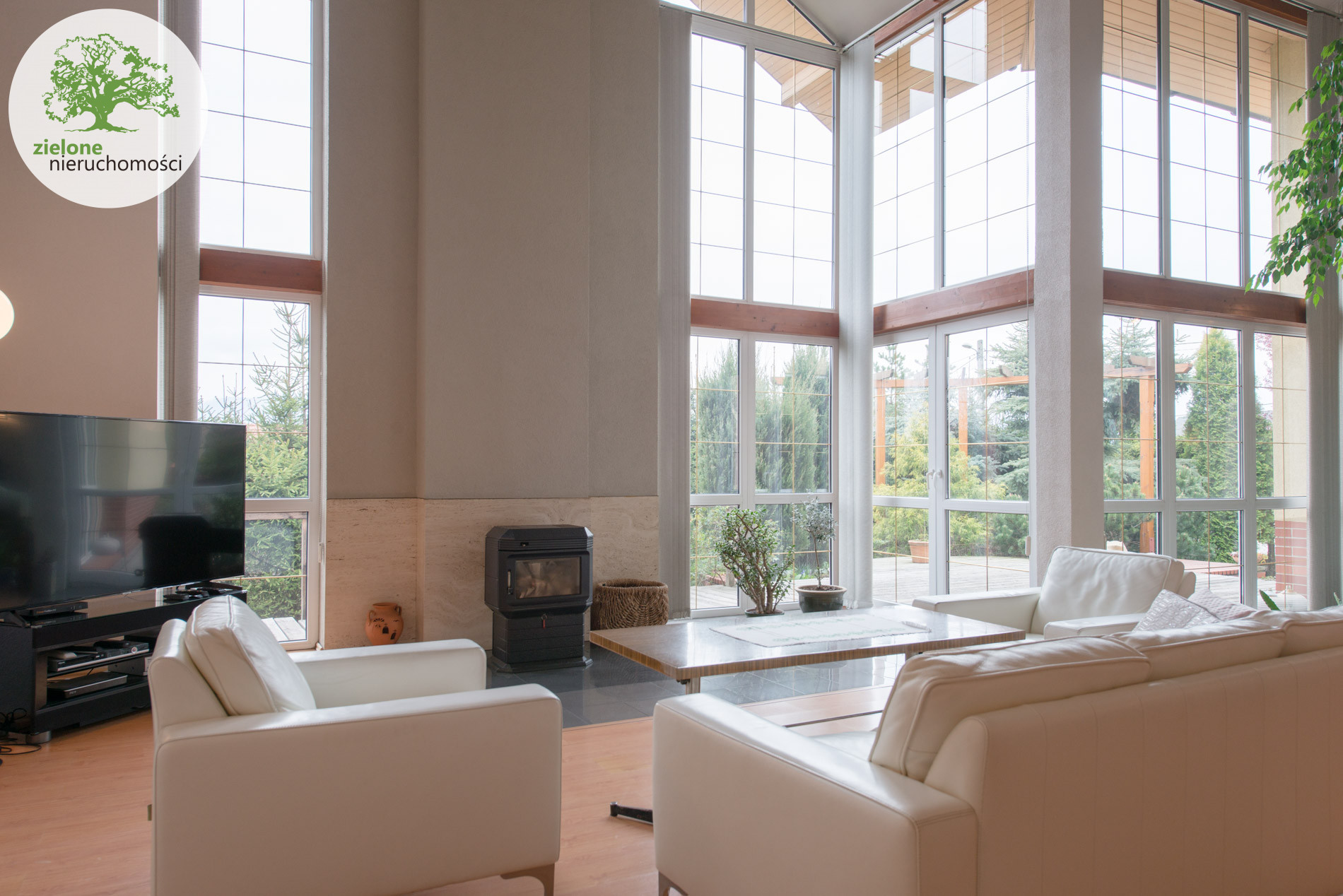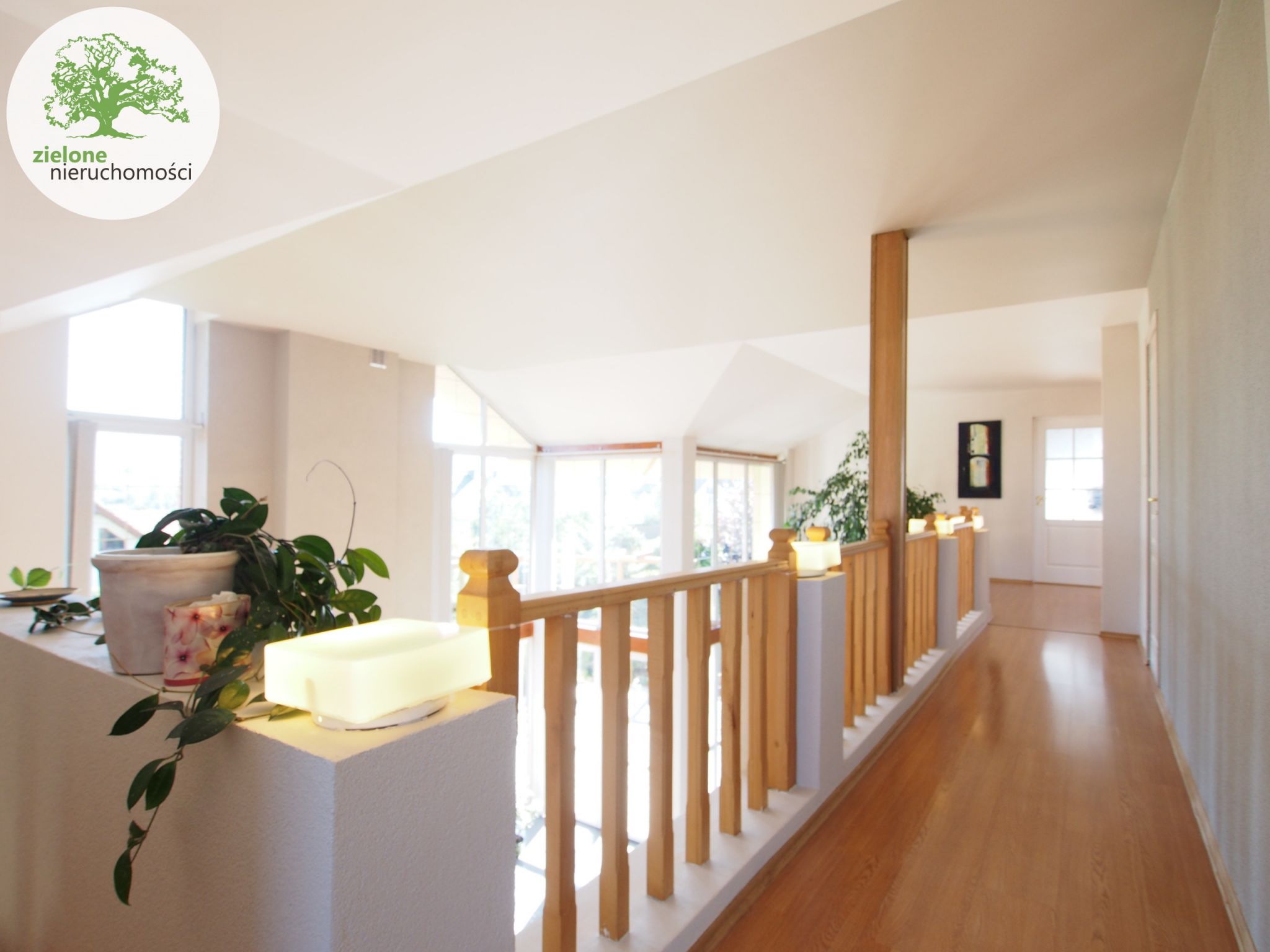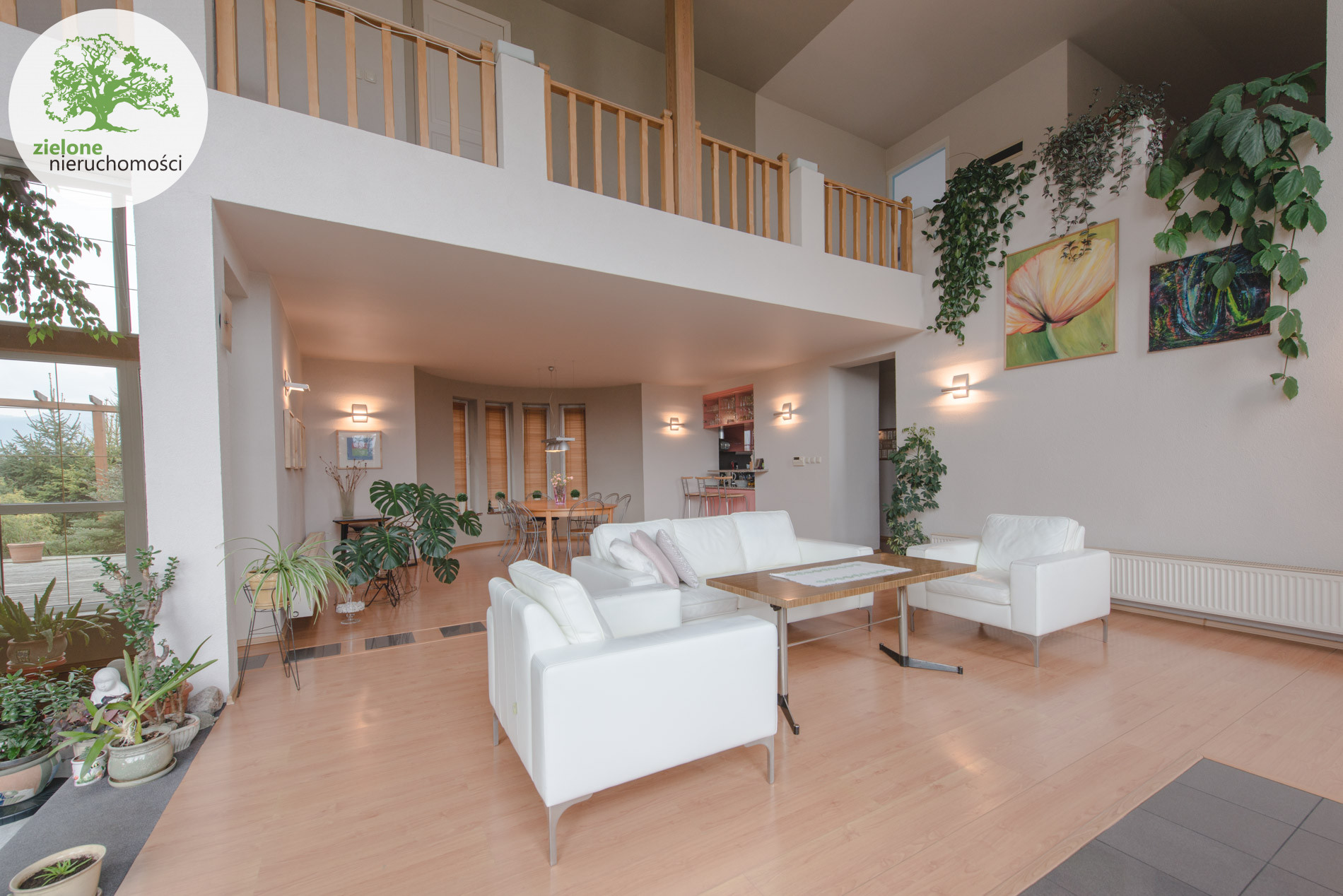 wiatrołap, oddzielna kuchnia, piękny salon z antresola, z kominkiem, wejściem na taras, niepowtarzalnymi oknami widokowymi, 2 pokoje gabinetowe, toaleta