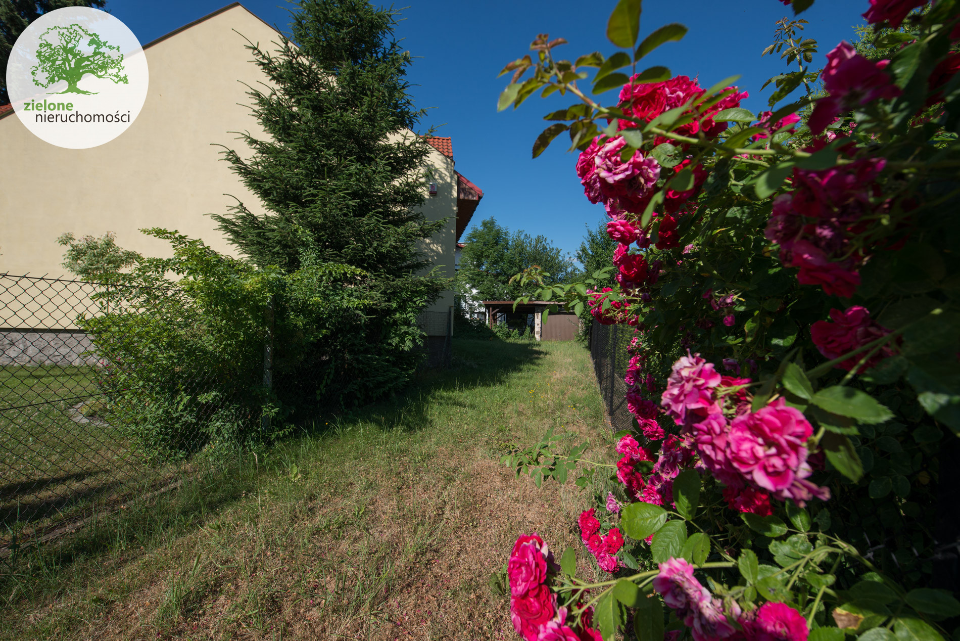 Garaż wolno stojący w raz z wiatą na drugi samochód. Na działce znajdują się liczne nasadzenia - drzewka owocowe.