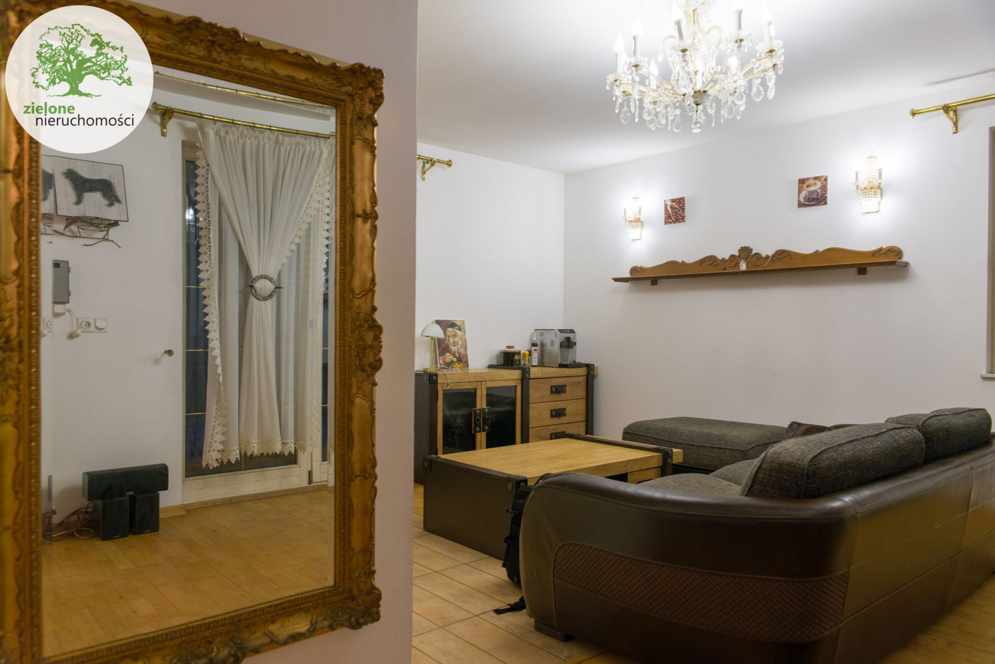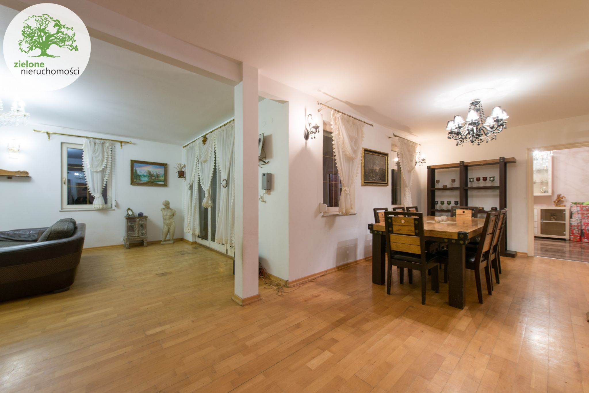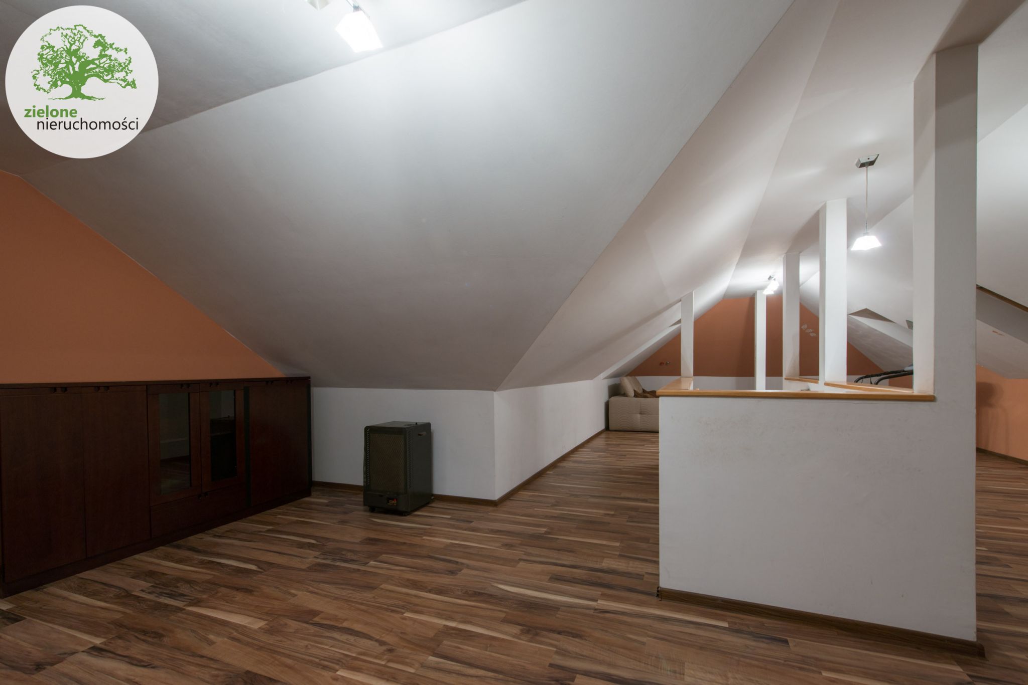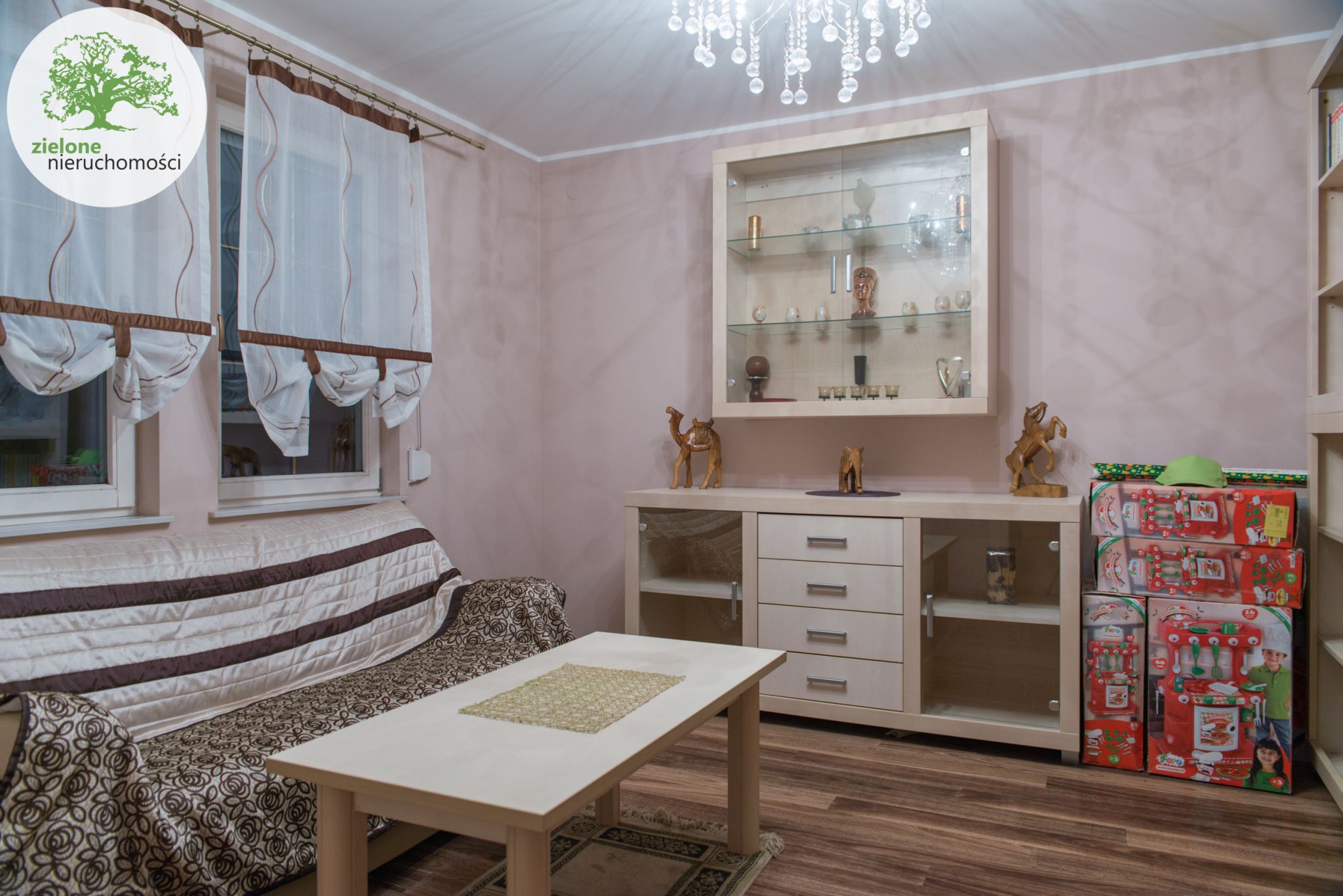 Dom jest parterowy z użytkowym poddaszem, składa się z kuchni z jadalnią, salonu z wyjściem na taras, 4 pokoi i łazienki z wanną i prysznicem. Okna drewniane wraz z roletami antywłamaniowymi
